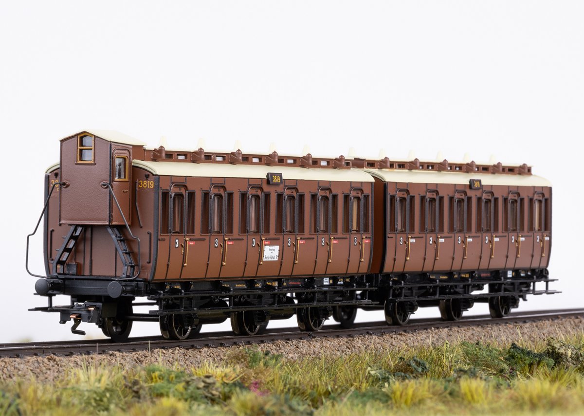 Ein Wagen-Paar B3/B3 2 x 2. Klasse in braungrün,