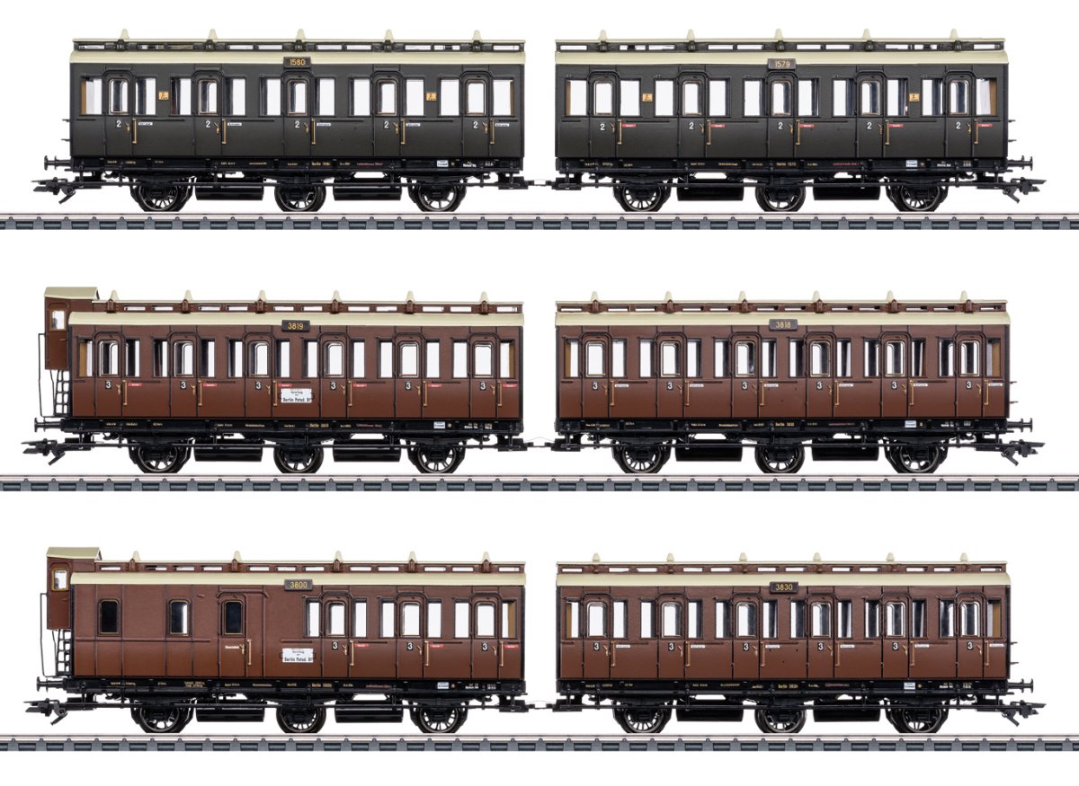 Drei 3-achsige Abteilwagen-Paare preußischer Bauart